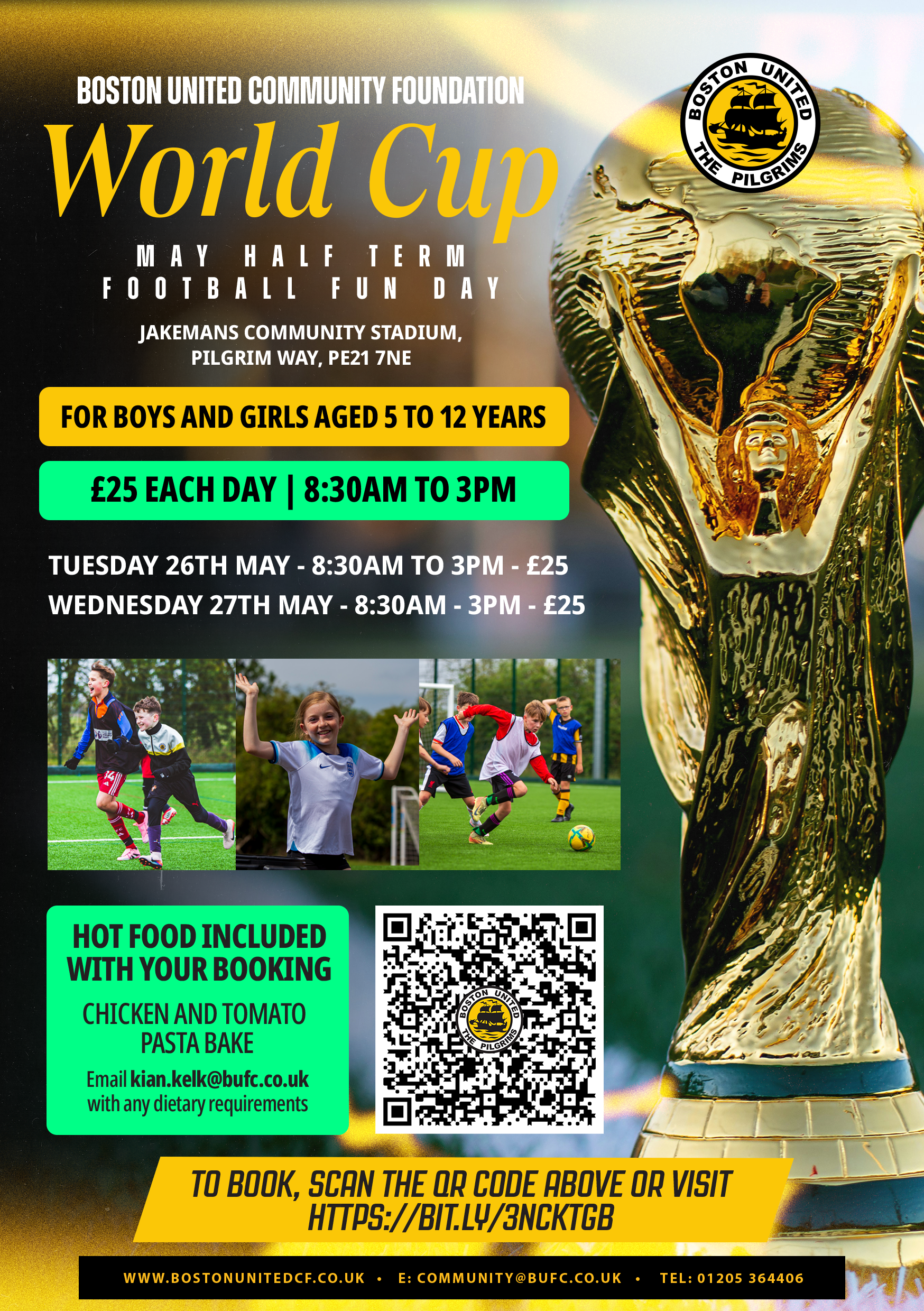 With the excitement of the World Cup building, there’s no better way for young football fans to get into the spirit than by joining the Boston United Football Fun Day this May Half Term!